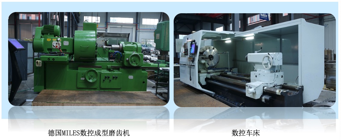 公司擁有德國DMG五軸加工中心、意大利PAMA鏜銑加工中心、德國NILES數(shù)控成型磨齒機等先進設(shè)備、德國申克動平衡機等國際先進加工設(shè)備,擁有各類專業(yè)加工與檢測設(shè)備,可加工制造直徑達4米、模數(shù)不限、精度達DIN-3級、齒面硬度達HRC58-62的各類整體式齒輪件、無退刀槽的人字齒以及高精度箱體,同時掌握世界領(lǐng)先的螺旋錐齒輪單配加工技術(shù)。