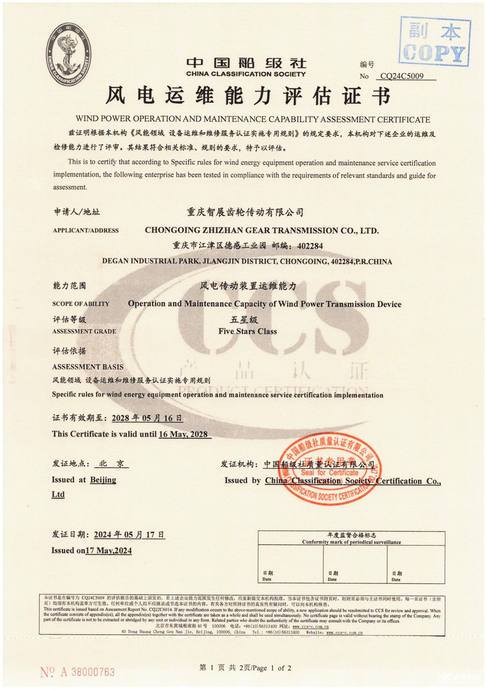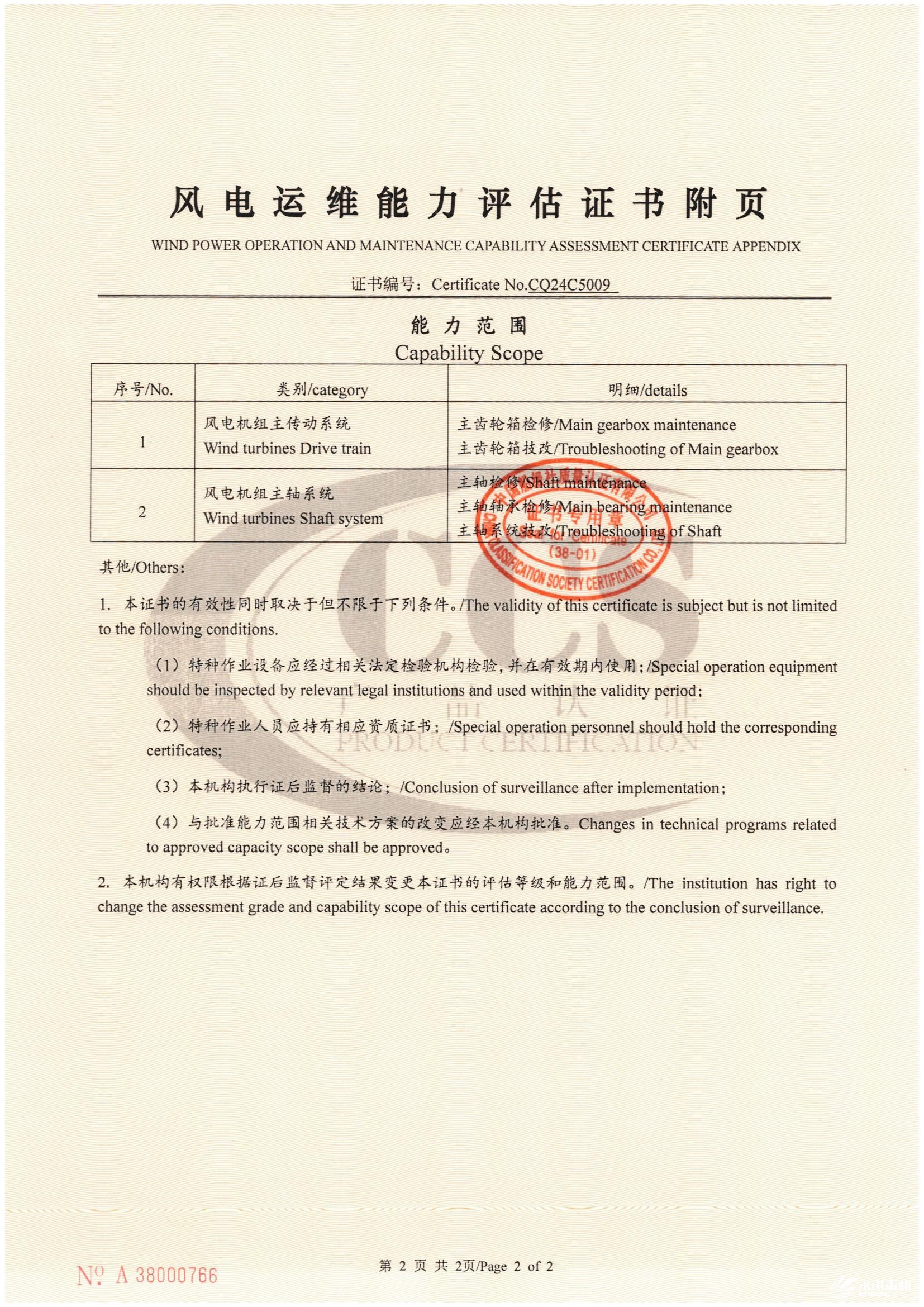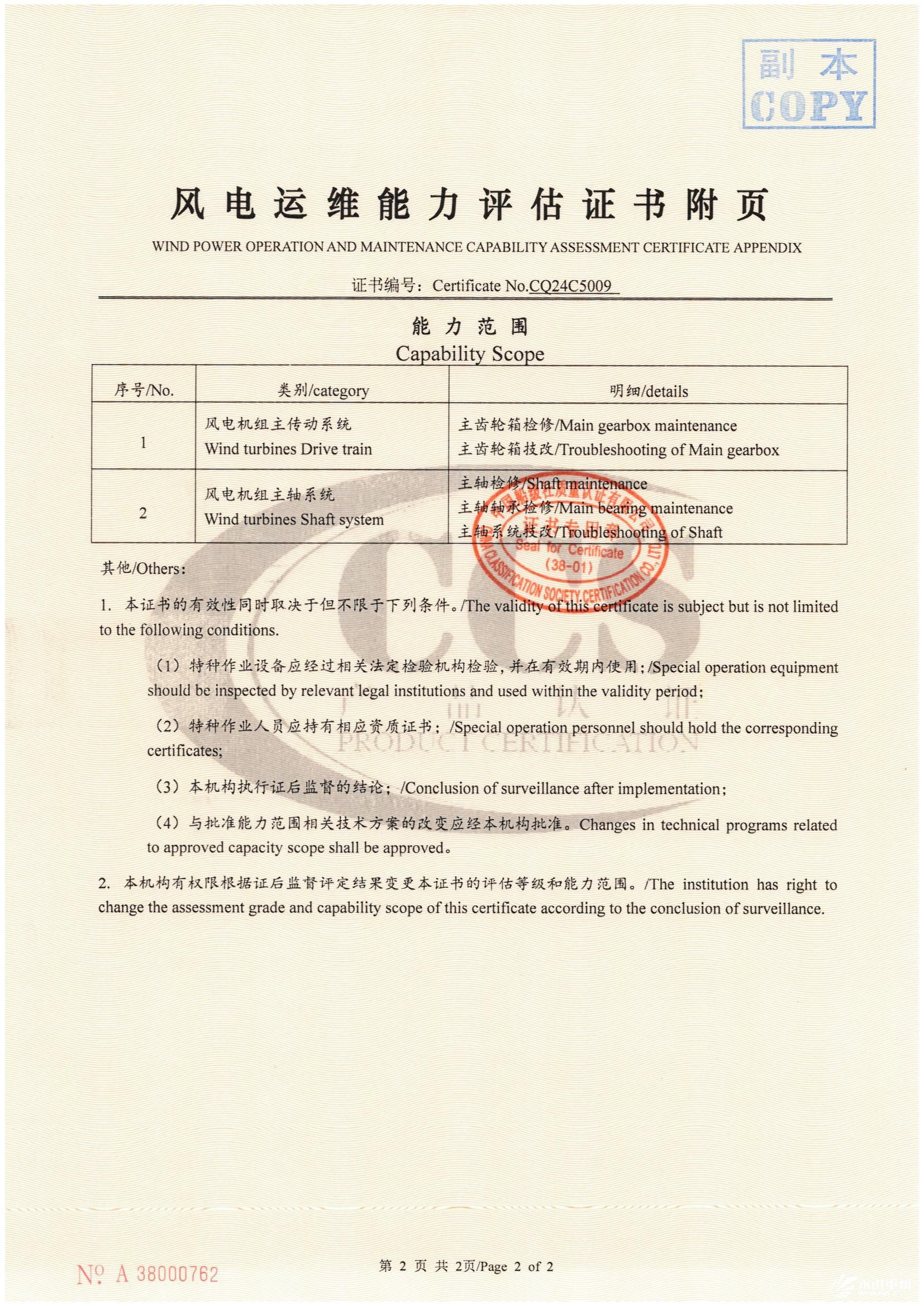 中國(guó)船級(jí)社風(fēng)電運(yùn)維能力評(píng)估證書